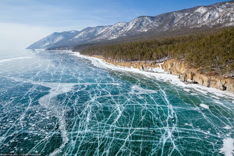 Зимой, когда температура снижается до минус 20 градусов, Байкал замерзает. Сначала появляется ледяная корка, которая увеличивается с морозами, а к середине января толщина льда – 70 – 113 см. По такой толще льда смело передвигаются автомобили до 15 тонн веса. Во многих местах, где глубина поменьше, отлично просматривается дно водоёма