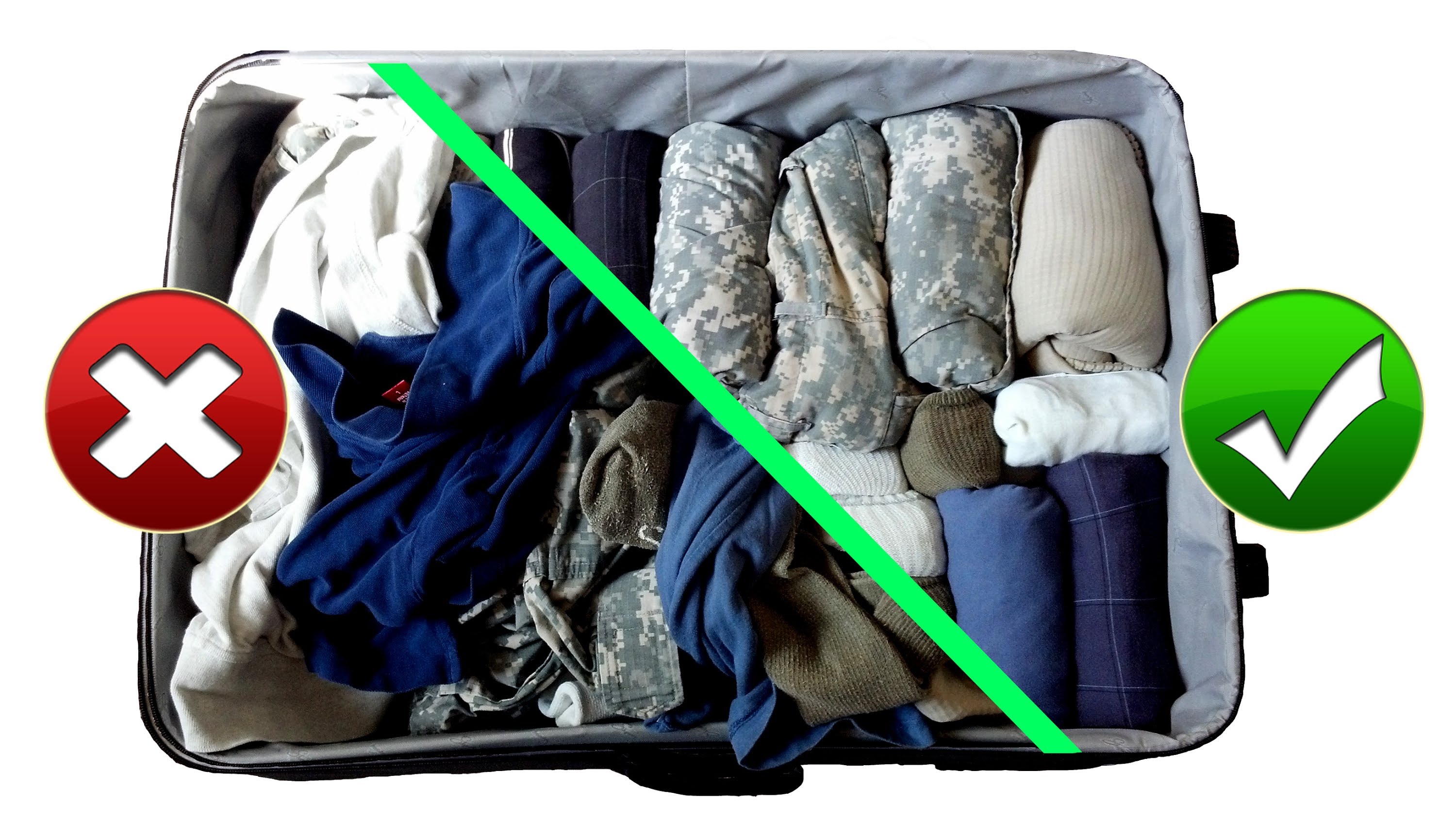 Выход есть! Скручивание одежды в трубочку освободит место в чемодане и сделает его более вместительным. Тогда туда поместиться намного больше вещей, что позволит не тащить с собой дополнительные сумки и пакеты.