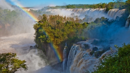 Чудом бразильской природы является и водопад Игуасу. Этот водопад уникален своей шириной, которая составляет около трех километров, а также высотой 72 метра. Воды этого водопада создают удивительное явление разноцветную радугу, которую практически всегда можно там увидеть.