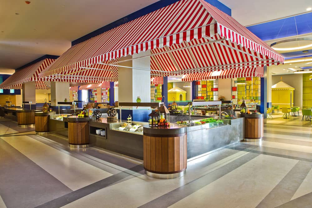 Снэк-бар, ресторан («Шведский стол»), ресторан (меню), бар.