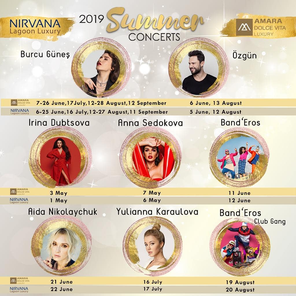 Афиша мероприятий в отеле Crystal Nirvana Lagoon Villas Suites Spa 5* на майские праздники, а так же на лето и сентябрь 2019 года.