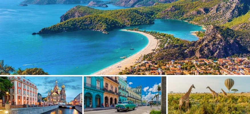 Можно бронировать: все туры по России, а так же Турцию – Анталийское побережье (Алания, Анталия, Белек, Кемер, Сиде) и туры в Стамбул, плюс для любителей экзотики доступны для бронирования: Куба и Танзания.